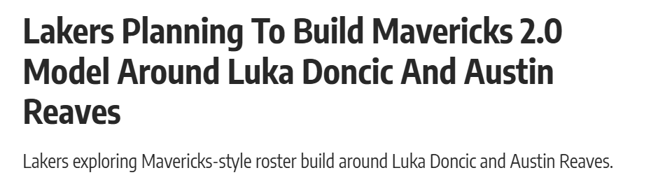 马尼克斯报道称,湖人正在研究独行侠当年冲进总决赛的成功模式,试图围绕东契奇和里夫斯复制其核心阵容要素。